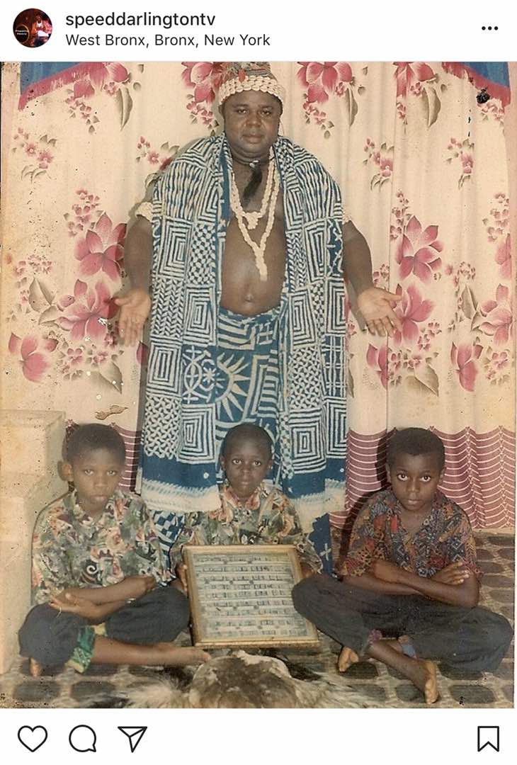 The “Bangdadadang” crooner took to his Instagram page to share a throwback photo of his father alongside himself and his brothers and revealed that he’s not always coming online to brag about his father’s wealth unlike the “Omo Baba Olowo” himself – Davido.